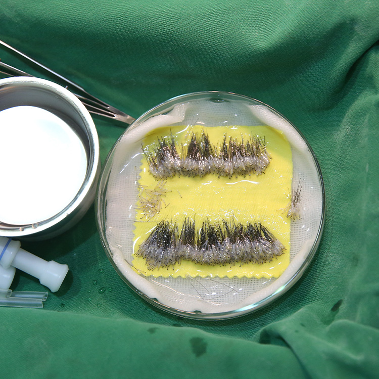 모낭 조직을 이식합니다.