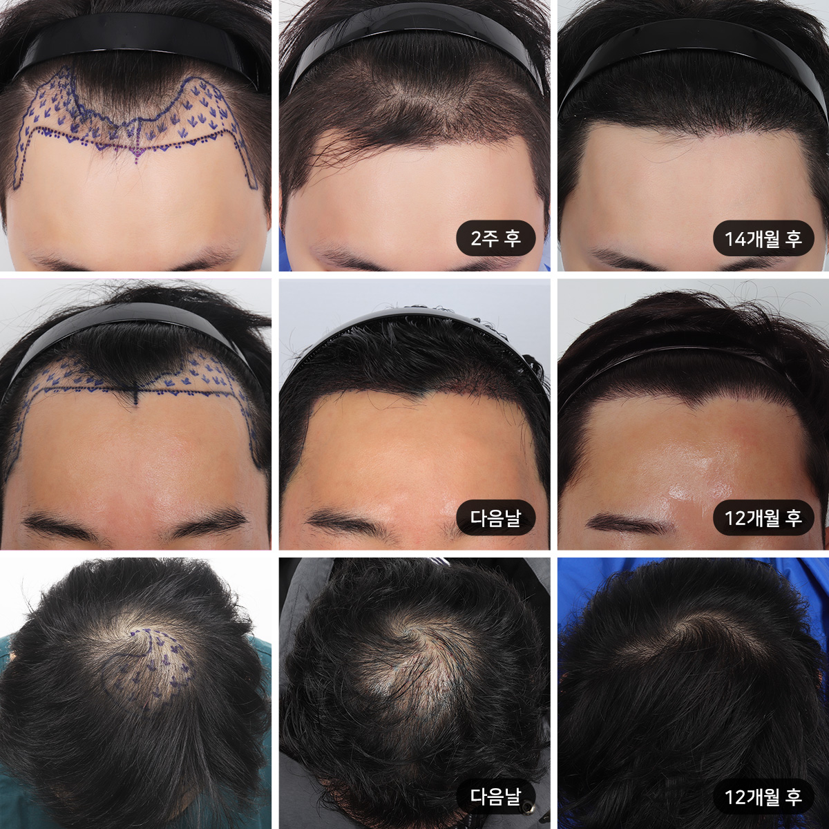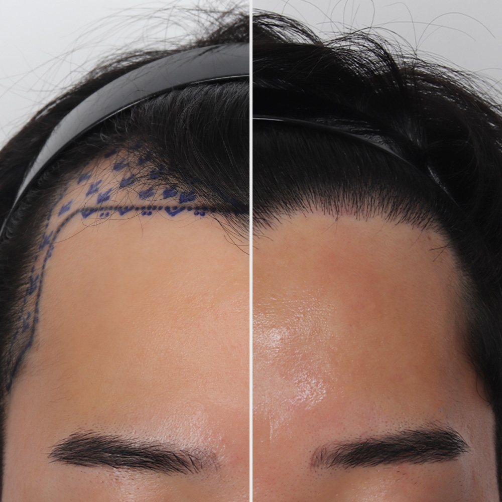 이마라인이 M자 형태로 후퇴되어 3,000모 이식을 결정했습니다.